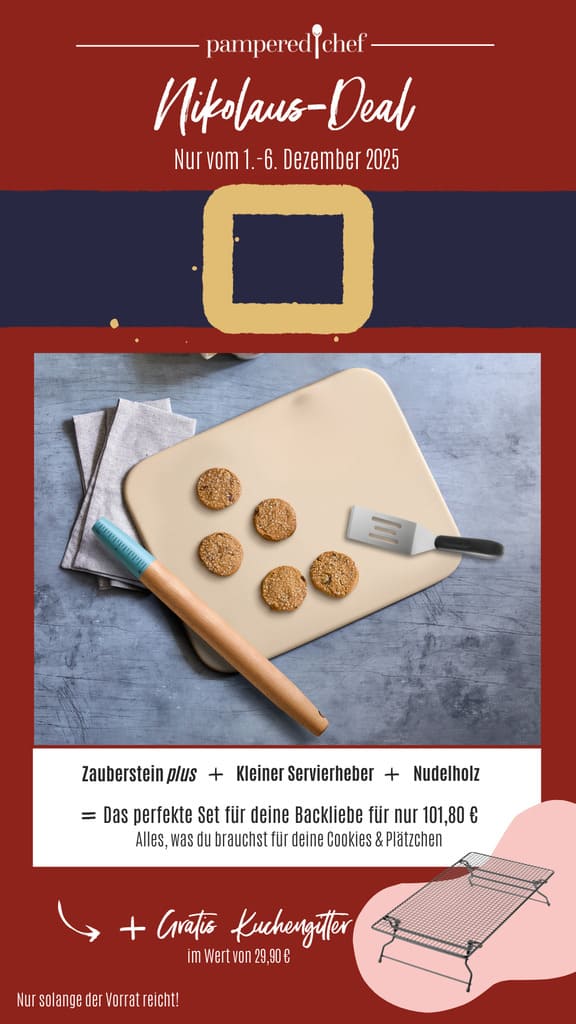 Meine Lieblingsprodukte von Pampered Chef®? Schwer zu sagen, aber auf den Ofenmeister, den manche von euch sicher noch unter dem Namen Zaubermeister kennen, den Zauberstein und den Ofenzauberer möchte ich ganz sicher nicht mehr verzichten.